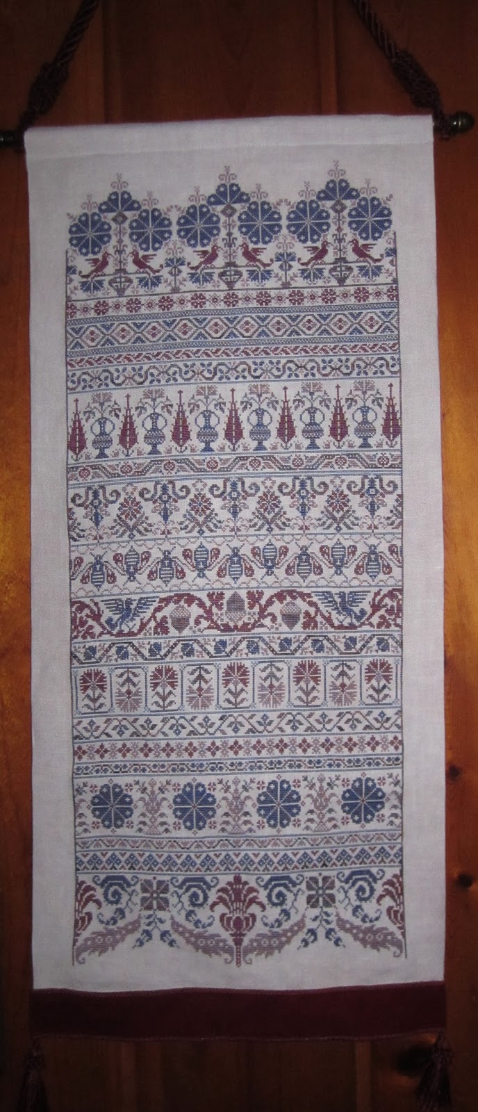 I just read on Facebook that Martina Rosenburg of Chatelaine Designs suddenly passed away. The stitching community has lost one of it's most incredible artists. I found myself crying as I read many of the posts. I have enjoyed stitching Martina's designs. In tribute here are several WIPs and my finish of the Celtic Mystery.